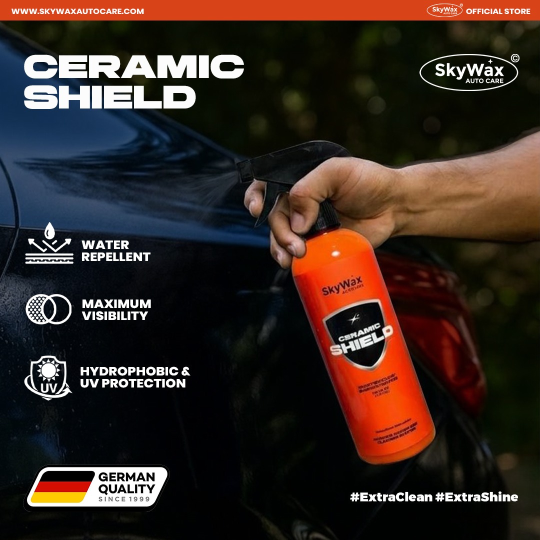 Ceramic Shield adalah pelindung cat kendaraan berbasis teknologi ceramic nano coating yang membentuk lapisan transparan berdaya rekat tinggi di atas permukaan cat. Lapisan ini berfungsi sebagai perlindungan ekstra terhadap sinar UV, air, debu, jamur, serta oksidasi yang dapat mengurangi kualitas tampilan kendaraan. Dirancang untuk pengguna yang mengutamakan kualitas, Ceramic Shield memberikan efek kilap mewah, permukaan licin, dan tampilan lebih terawat, tanpa proses coating profesional yang kompleks.